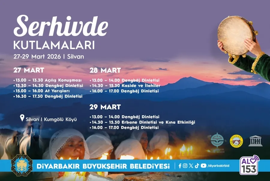 Mart ayının son üç gününde gerçekleştirilen Serhivde Şenlikleri, bu yıl 27, 28 ve 29 Mart tarihlerinde düzenlenecek. Şenlikler, Silvan'ın Kumgölü Mahallesi'nde, Büyükşehir Belediyesi Kültürel Mirası Koruma ve Müzeler Şube Müdürlüğü ile Silvan Belediyesi'nin koordinasyonunda hayata geçirilecek.